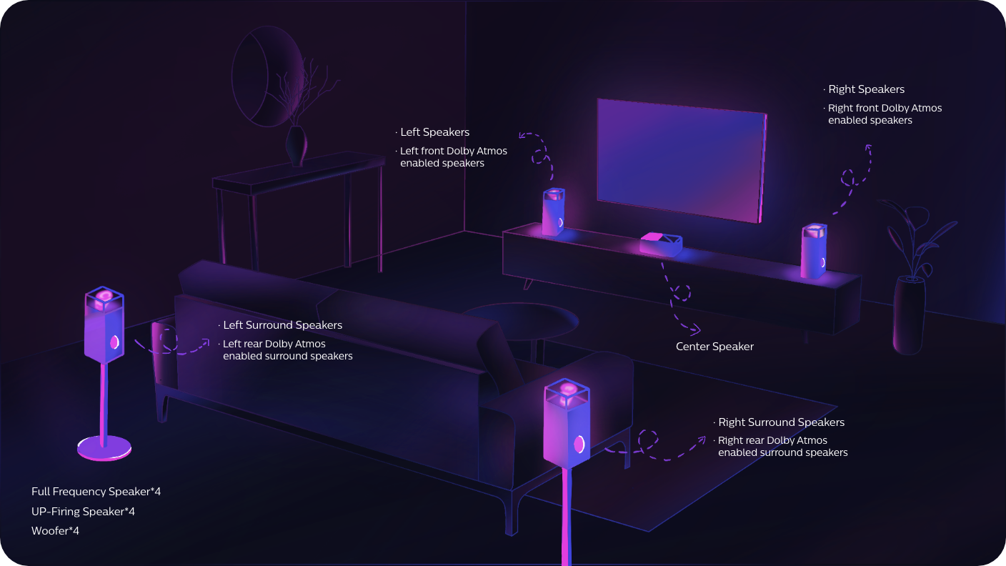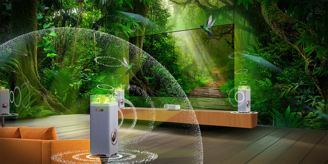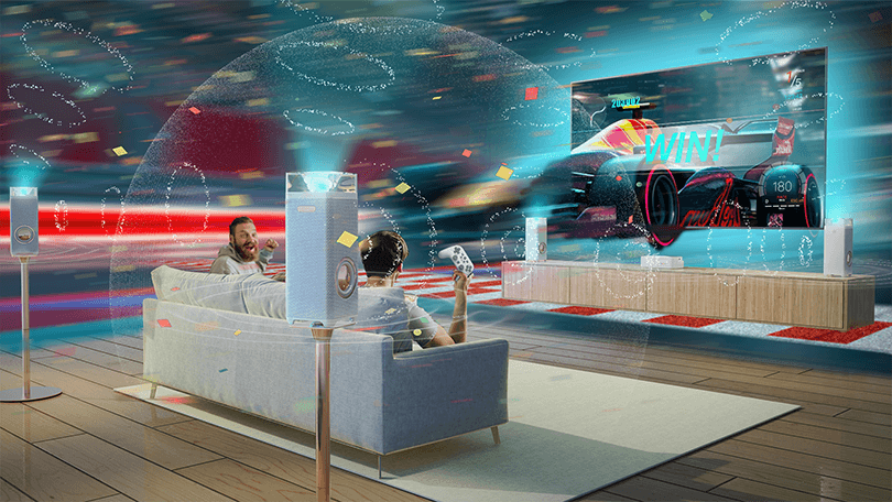 Acenda sua imaginação A iluminação ambiente se sincroniza com seu conteúdo para proporcionar uma experiência imersiva sem igual